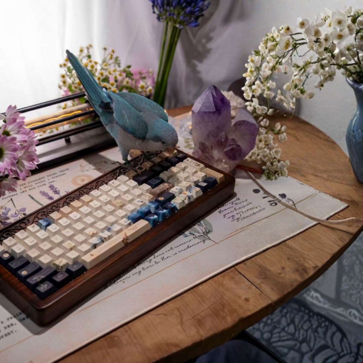 Bring poetry and elegance to your desk setup with this beautifully crafted keycap set inspired by Emily Dickinson’s timeless works.