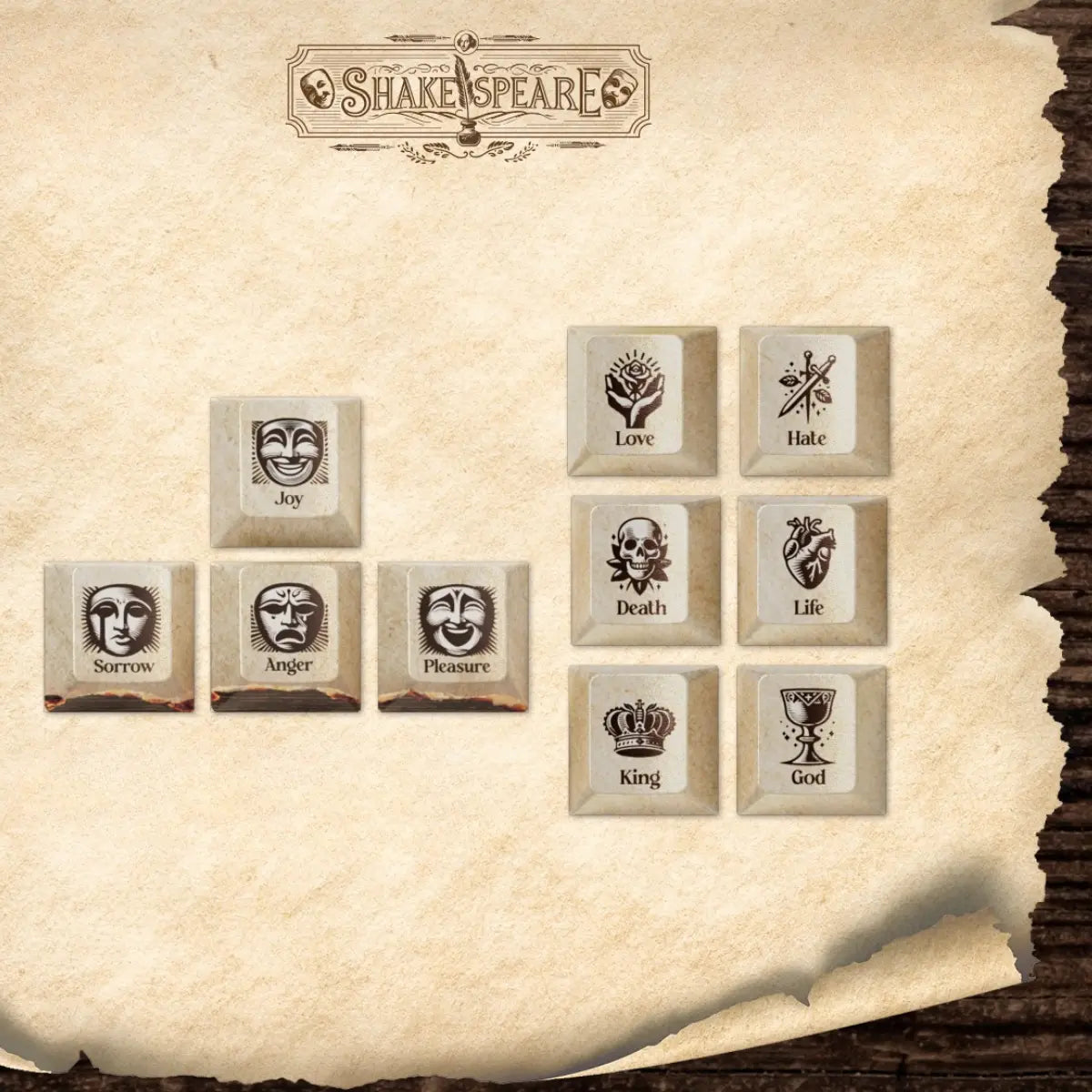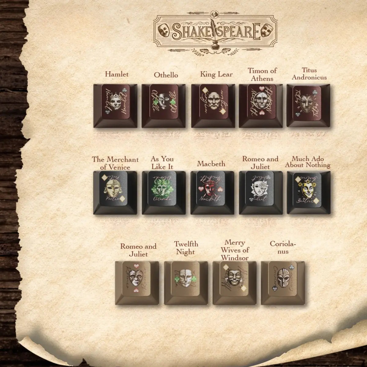 Each key draws from Shakespeare’s timeless works — with motifs of theater masks, sonnets, and vintage manuscripts — bringing literary elegance to your keyboard.